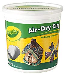 Crayola Air-Dry Clay® is a fine, natural white earth clay that air dries to a hard solid. It softens easily with water and quickly cleans from hands and surfaces. It can be painted with tempera, acrylics or watercolors when dry.